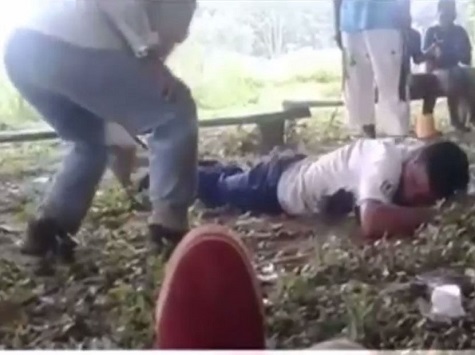 Der junge Mann krümmt vor Schmerzen, als er 21 Peitschenhiebe von einer anderen Person erhält. Auf die gleiche Weise kann man sehen, wie andere Erwachsene Tereré trinken und die Szene als Routine betrachten. Es wird vermutet, dass der Vorfall sich im Bereich des Departements Caaguazú ereignete.