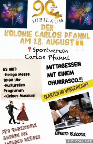 Im Zuge dessen findet am kommenden Sonntag das 90-jährige Gründungsfest der Kolonie statt. Um 10.00 Uhr ist ein Gottesdienst in der örtlichen Kirche geplant. Danach geht der Festakt auf dem gegenüberliegenden Sportplatz mit einem Asado, Musik und Tanz weiter. Es werden auch in einem kleinen Museum alte Gegenstände aus der Gründerzeit der Kolonie zu besichtigen sein.