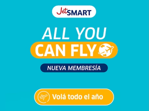 Asunción: Die Ultra-Low-Cost-Airline JetSMART hat den Start von „All You Can Fly“ bekannt gegeben. Dabei handelt es sich um eine Jahresmitgliedschaft, die es ermöglicht, 12 Monate lang unbegrenzt durch Südamerika zu fliegen. Man zahlt einen einmaligen Betrag und entrichtet bei jedem Flug lediglich die anfallenden Gebühren und Steuern.