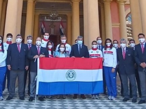 Asunción: Der Präsident der Republik, Mario Abdo Benítez, überreichte die Nationalflagge an die Delegation, die zu den Olympischen Spielen 2021 nach Tokio reisen wird.