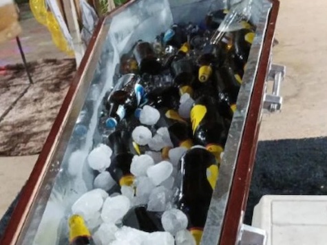 In einen Sarg legten sie die 1Liter Bierflaschen. Nach Angaben der Besitzerin passten drei Kästen Bier hinein, zusammen mit reichlich Eiswürfeln.