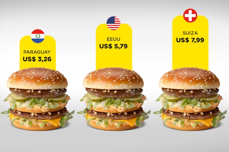 Asunción: Die Zeitschrift The Economist veröffentlicht jedes Jahr den Big-Mac-Index, der zu einem Indikator für die weltweite Kaufkraft geworden ist. Der Vergleich erfolgt durch die Simulation des Kaufs eines Hamburgers mit denselben Zutaten in verschiedenen Ländern. In Paraguay liegt der Preis bei 3,26 US-Dollar, in den Vereinigten Staaten bei 5,79 US-Dollar.