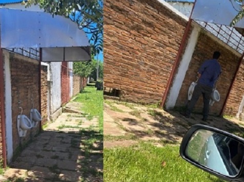Villarrica: Eine eher unübliche Szene durchbrach den städtischen Alltag in Iturbe: Mitten auf dem Gehweg, für alle sichtbar, wurde ein Urinal installiert. Die Konstruktion zog sofort neugierige Blicke und Kommentare auf sich.