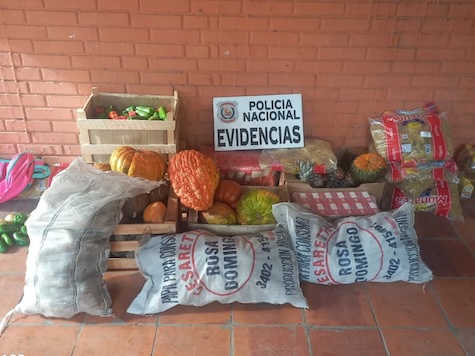 Im Fahrzeug fanden sie sieben 4 kg-Tüten Nudeln, eine Schachtel Tomaten, eine Schachtel Paprika, zwei Kartons Rote Bete, 12 x 1-Kg-Pakete Reis, 20 500-Gramm-Pakete Reis, 11 Kürbisse, drei Säcke Kartoffeln, fünf Ananas, eine Schachtel mit 12 Einheiten 1-Liter-Milch und 12 Liter Öl.