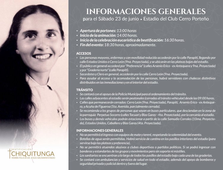 Nach dem Jesuiten San Roque González de Santa Cruz ist Chiquitunga die zweite Person aus Paraguay die seliggesprochen wird. Eine riesige Zeremonie wird im Stadion des Clubs Cerro Porteño stattfinden.