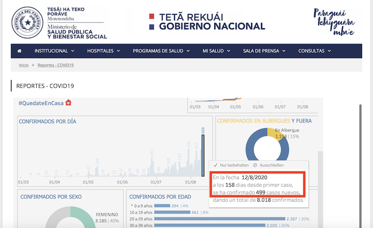 2. Zur Ergänzung: Man hat inzwischen anscheinend die Definition geändert, ab wann man in Paraguay als COVID-19-Infizierter gilt. Dazu braucht es jetzt keinen positiven Test mehr. Die betroffene Person braucht nur einen „engen“ Kontakt mit einem Infizierten gehabt zu haben. Wobei enger Kontakt und entsprechende Symptome schwammig definiert und individuell auslegbar sind. Damit lassen sich die Zahlen der Infizierten weiter in die Höhe treiben.