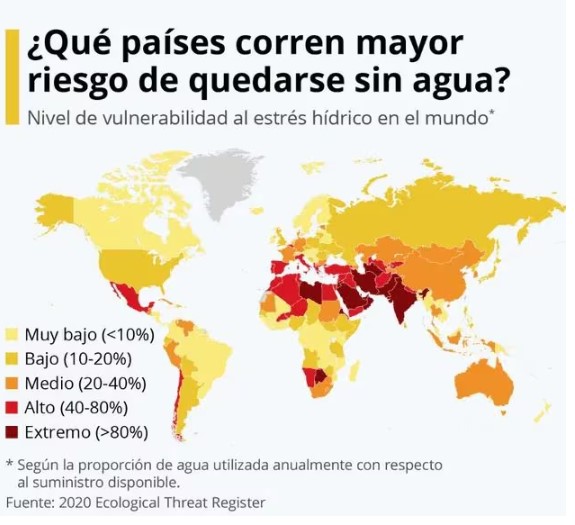 Tatsächlich ist eine der latentesten Sorgen im Hinblick auf diese Herausforderungen der Zugang zu Trinkwasser, eine Tatsache, die Südamerika stark betrifft, eine Region, die sich als gefährdet herausstellt und für die alarmierende Prognosen für das Jahr 2024 gelten, da es auf diesem Kontinent mehrere Länder gibt, die unter gravierender Wasserknappheit leiden könnten.