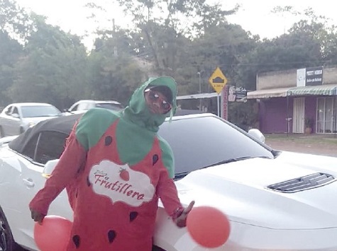 Ein als Erdbeere verkleideter Verkäufer ging in sozialen Netzwerken viral, weil er mitten auf der Route in Areguá für Aufsehen gesorgt hatte.