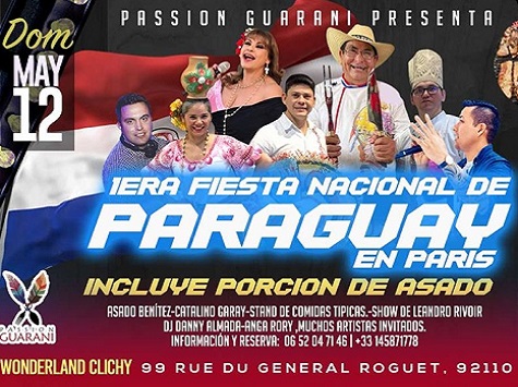 Asunción: Am Sonntag, dem 12. Mai, findet in der französischen Hauptstadt Paris das erste Fest Paraguays statt. Eine Veranstaltung, deren Hauptattraktion die Gastronomie des Landes sein wird und an der Benjamín “Asado“ Benítez und die paraguayische Route der Sopa präsentiert werden. Es wird auch eine wichtige Parade einheimischer Künstler geben.