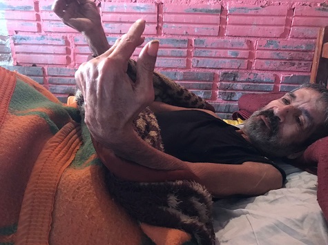 Bei dem älteren Mann handelt es sich um Cornelio Ayala, der aufgrund seiner Alkoholsucht verschiedene Krankheiten durchmachte, die ihn nun ans Bett fesseln.
