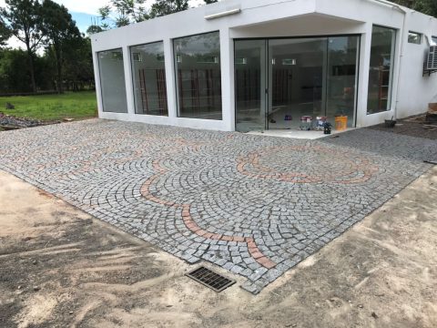 Dann kann man Pflastern wie man will. Die Fugen mit Sand/Qurzsand oder mit Wasserdurchlässiger Kunstharzmischung wer es teuerer haben möchte,ausfegen. Das bleibt so wie es ist.