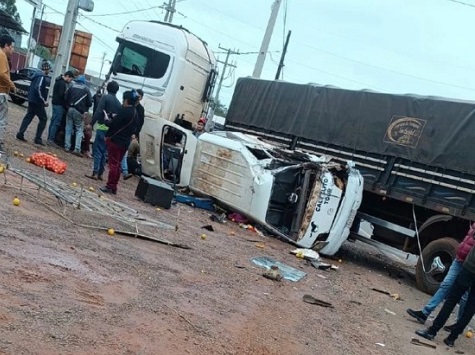 Villarrica: Eine Frau und ein 7-jähriges Mädchen, die in einem Kleinbus saßen, kamen ums Leben, nachdem ein Lastwagen, der Sojabohnen transportierte, mit dem Fahrzeug kollidierte.