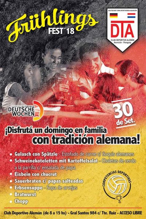Beginn ist am Sonntag, den 30. September, um 08:00 Uhr, auf dem Gelände des Deutschen Turn- und Sportvereins, der auf der Straße General Santos / Tte. Ruiz in Asunción liegt. Enden wird das Fest am Nachmittag um 15:00 Uhr.