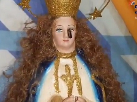 Celsa Martínez (63) aus San Pedro del Ycuamandiyú war überrascht, als sie gestern Morgen Kerzen vor dem Bild der Jungfrau von Caacupé anzünden wollte. Sie stellte fest, dass eine schwarze Träne aus einem der Augen kam.