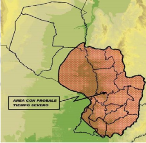 Am Samstagnachmittag werden die Departements Central, Ñeembucú, Itapuá, Misiones, Caazapá, Paraguarí, Cordillera, Caaguazú, Alto Paraná, Guairá und Presidente Hayes von dem Schlechtwettergebiet erfasst. Im weiteren Verlauf und am Abend des morgigen Tages sind es die Departements Caaguazú, Alto Paraná, Canindeyú, San Pedro, Concepción, Amambay, Alto Paraná und Presidente Hayes, die entweder neu getroffen werden oder noch unter dem Einfluss der Unwetterfront liegen.