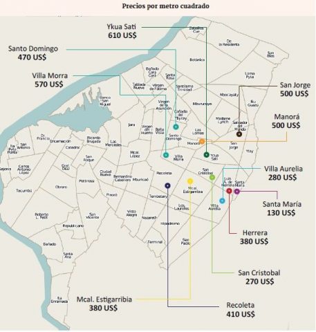 Die Quadratmeterpreise der wichtigsten Stadtviertel in Asunción