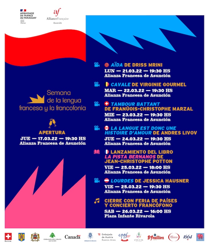 Zu Ehren dieser Woche, vom 21. bis 25. März, präsentieren die Alianza Francesa und die frankophonen Botschaften mehrere Aktivitäten zur Förderung der frankophonen Kultur im Land, darunter eine Filmaustellung, an der neben der Schweiz und Frankreich auch Österreich mit dem Film Lourdes von Jessica Hausner (25. März 2022 um 19:30 Uhr in der Alianza Francesa) teilnimmt.