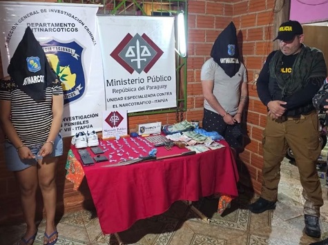 Encarnación: Die Staatsanwaltschaft und die Nationalpolizei führten im Rahmen des Kampfes gegen den Mikrohandel im Rahmen des Sumar-Plans, der eine Achse der paraguayischen Regierung ist, eine Razzia in einem Haus im Stadtteil Obrero der Stadt Obligado, Departement Itapúa, durch, wo ein 30-jähriger Mann und eine 23-jährige Frau verhaftet wurden.