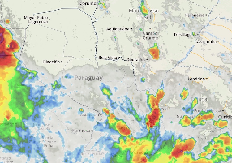 Aus Argentinien dringt erneut unstabiles Wetter nach Paraguay, welches heute Nachmittag, wie auch schon in den vergangenen Tagen, teilweise schwere Unwetter mit sich bringen kann.