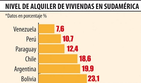 12,4% der paraguayischen Bevölkerung leben in gemieteten Häusern, Wohnungen oder Zimmern. Nur in Peru (10,7%) und Venezuela (7,6%) ist der Anteil niedriger. Kolumbien ist das Land mit der höchsten Rate an Mietobjekten. Sie beträgt 39,1%.