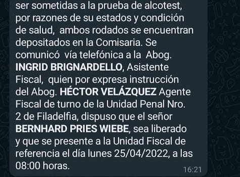Dies ist eines der wenigen Beispiele dafür, wie die Justiz im paraguayischen Chaco gehandhabt wird, wo die Mennoniten und Ausländer die Privilegiertesten sind und von der Justiz beschützt werden, während der gute Bürger schweigen und nicht über seine Entscheidungen sprechen darf.