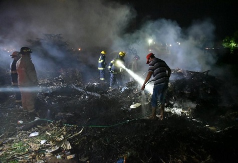 Asunción: Feuerwehrleute waren zu einem Brandeinsatz gerufen worden, weil sich Müll auf der Straße Artigas entzündet hatte. Ihre Arbeit wurde von einem Ständchen begleitet.