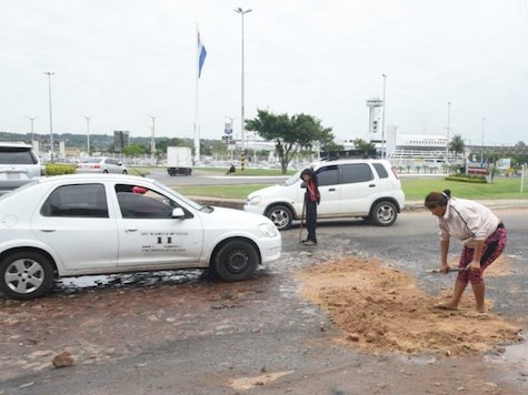 Luque: Obgleich Touristen, Investoren oder Diplomaten den Flughafen als tagtäglichen Start- und Landepunkt des Landes ansehen, schaut der Staat gekonnt weg. Schlaglöcher werden nun von Frauen geflickt.