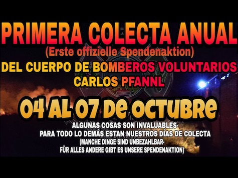 In Carlos Pfannl, Guairá, hat Maria Elena Dubberke es geschafft, in weniger als einem Jahr die Freiwillige Feuerwehr ins Leben zu rufen. Jedoch ist weiterhin Unterstützung notwendig. Dubberke initiiert vom 4. bis 7. Oktober eine Spendenaktion, bei der Sie gefragt sind. Ihre Beweggründe sind Folgende: Neue Ausrüstung aus Deutschland zu beschaffen und die Kosten der Einsätze zu decken.