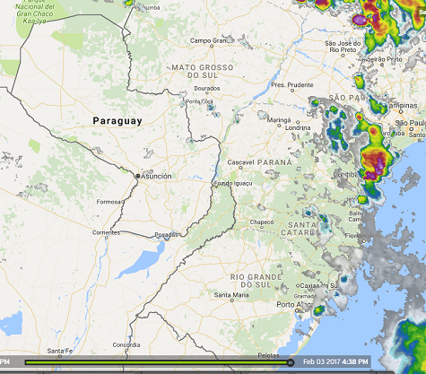 Auf dem aktuellen Satellitenbild über Paraguay, das unten stehend eingefügt wurde, sind wenige oder gar keine Wolken erkennbar, aber die Meldung der Direktion für Meteorologie aus Asunción ist immer noch aktuell. Im Beitragsbild sind die aktuellen Vorhersagen für heute ersichtlich. Es soll am Nachmittag gewittern und abends zu Schauern kommen, die Hoffnung stirbt zuletzt.