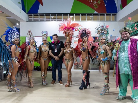 Der dreifarbige Stand beherbergt die ganze Magie des größten Festes des Landes, und das Publikum genießt bereits interaktive Spiele, Geschenke, typische Speisen, Fotos mit den Figuren, Samba-Kurse und viele weitere Attraktionen. Um das sensorische Erlebnis abzurunden, werden Bilder früherer Karnevalsausgaben projiziert. Es sind etwa 15 nationale Marken präsent, die meisten davon privat, die sich auf der größten Tourismusmesse Lateinamerikas präsentieren.