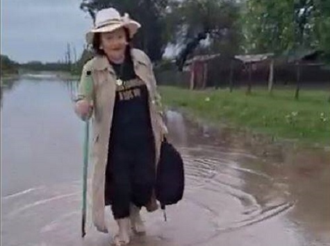 Es handelt sich um María Magdalena Vargas de Mendoza, die in dem Video zu sehen ist, wie sie einen mit Wasser überfluteten Feldweg entlangläuft. Dies ist der Weg, den sie Tag für Tag zurücklegen muss, manchmal bei Regen, manchmal bei sengender Hitze, in der Chaco-Gemeinde Cadete Pastor Pando.