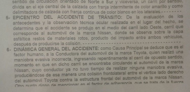 Loma Plata: Das polizeilich angeordnete Gutachten zum Unfallhergang belastet Jirina Sawatzky als Schuldige in die entgegengesetzte Fahrspur eingedrungen zu sein und die Kollision verursacht zu haben.