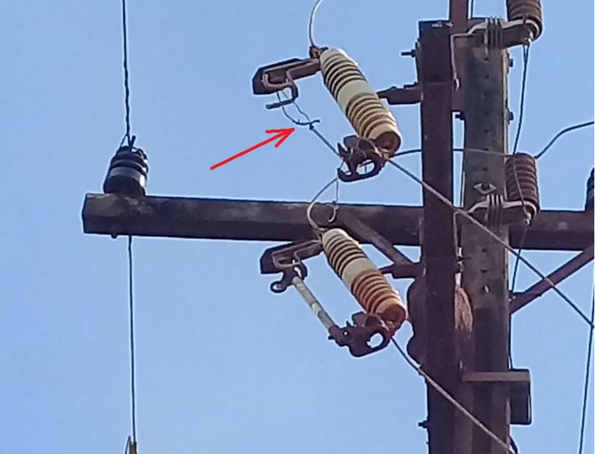3. Eine CAR-Partrouillen rückt auf Grund der Kundenreklamation aus und begutachtet den Fehler oder Schaden vor Ort. Wenn die Patrouille den Fehler beheben oder den Schaden reparieren kann und darf (interne ANDE-Richtlinien definieren dies genau), so tun sie es. Im geschilderten Fall scheint die Sicherung nicht mehr gut im Anker zu sitzen, weshalb sie immer wieder auf geht. Der ganze Seccionador Fusible muss ausgewechselt werden. Damit der Kunde wieder Strom hat behilft man sich mit einem Provisorium (entweder verwendet man den Cartouchendraht – das scheint hier der Fall zu sein – oder man wickelt eine Runde Kupfer- oder Aludraht entsprechenden Kalibers auf). Das Fehlerprotokoll wird entsprechend ausgefüllt und in der Basis der zuständigen Einheit zur definitiven Reparatur (je nach Priorität skaliert) weitergeleitet. Technisch betrachtet ist das Provisorium einwandfrei, es funktioniert genau gleich wie eine Sicherung mit der Einschränkung, dass man diesen Seccionador nicht mit einer Isolierstange operieren kann.