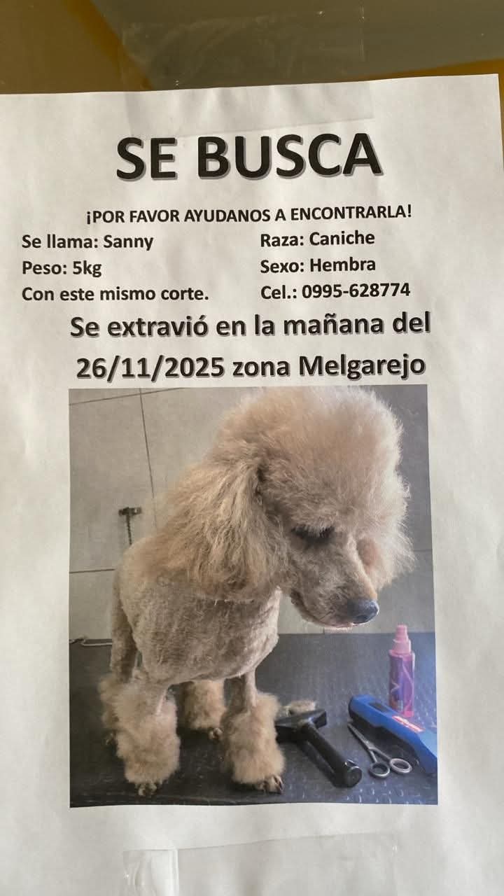 Kolonie Independencia: Eine traurige Suchmeldung bewegt derzeit die Gemeinde: Die kleine Caniche-Hündin (Pudel) namens Sanny ist seit dem Morgen des 26. November 2025 in der Gegend von Melgarejo abgängig. Die Besitzer sind verzweifelt und haben eine hohe Belohnung für die ehrliche Finderin oder den Finder ausgesetzt.