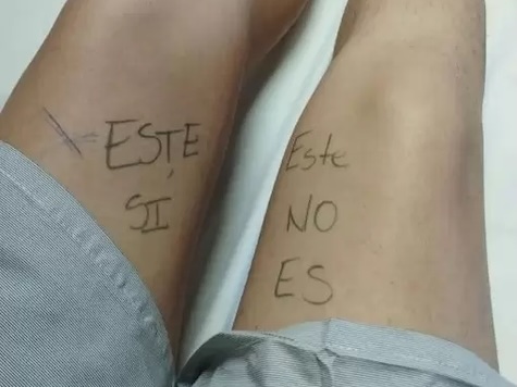 Das verbreitete Bild zeigt die Patientin mit einer mit einem Filzstift aufgebrachten Beschriftung auf dem Bein, das nicht operiert werden sollte, da sie unter Narkose keine Möglichkeit gehabt hätte, die Ärzte vor einem möglichen Fehler zu warnen.