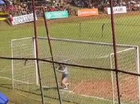 Itauguá: Mitten in einem spannungsgeladenen Spiel der Liga Itaugüeña de Fútbol wurde der reguläre Ablauf jäh unterbrochen: Eine junge Frau, die alle Blicke auf sich zog, stürmte das Spielfeld.