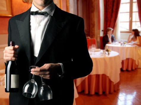 Es sieht alles danach aus, als wollte der Kellner mit ihr schimpfen, weil sie nach ihren letzten WC-Besuch die Klobürste nicht benutzt hat