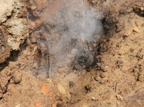 Das wird noch der Müll der Opas der Papas sein, der da am abfackeln ist. Zwischenzeitlich ist schon eine Wasserader darüber gewachsen.
