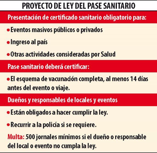 Der Abgeordnete Ramírez (Colorado Añetete) stellte am vergangenen Donnerstag den Gesetzentwurf vor, “der die Vorlage des Gesundheitszeugnisses für die Teilnahme an Massenveranstaltungen, die Einreise in das Land und andere vom Ministerium für öffentliche Gesundheit und soziale Wohlfahrt festgelegte Aktivitäten erfordert“.