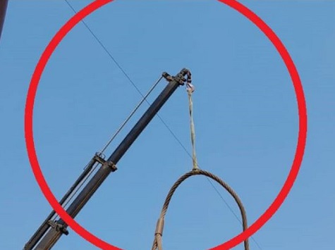 Das Hochspannungskabel verhakte sich am Ausleger des Krans und der Fahrer erlitt einen Stromschlag.