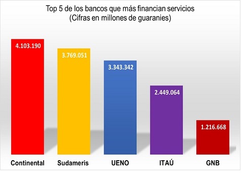 Die Unternehmen, die bei der Finanzierung des Dienstleistungssektors am meisten hervorstechen, sind folgende Banken: Continental, Sudameris, Ueno, Itaú und GNB.