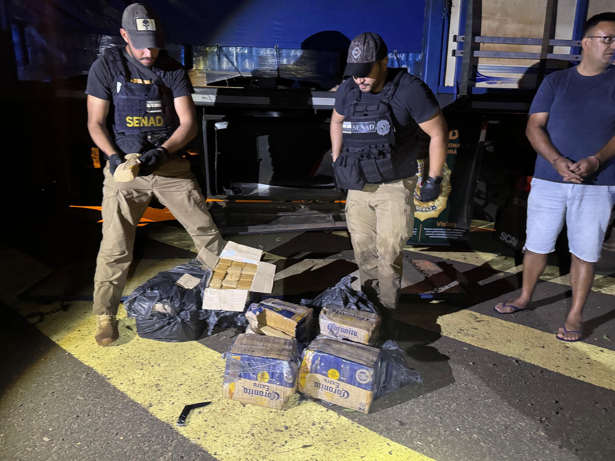 Jasy Kañy: Agenten des Nationalen Anti-Drogen-Sekretariats (Senad) haben in der Gegend von Jasy Kañy, Departement Canindeyú, eine Ladung Marihuana entdeckt, die in einem Lkw mit Paletten voller Bierdosen versteckt war. Die Aktion fand statt, als die Agenten einen Scania kontrollierten. Bei der stichprobenartigen Kontrolle wurde das Fahrzeug angehalten und die entsprechende Überprüfung durchgeführt.