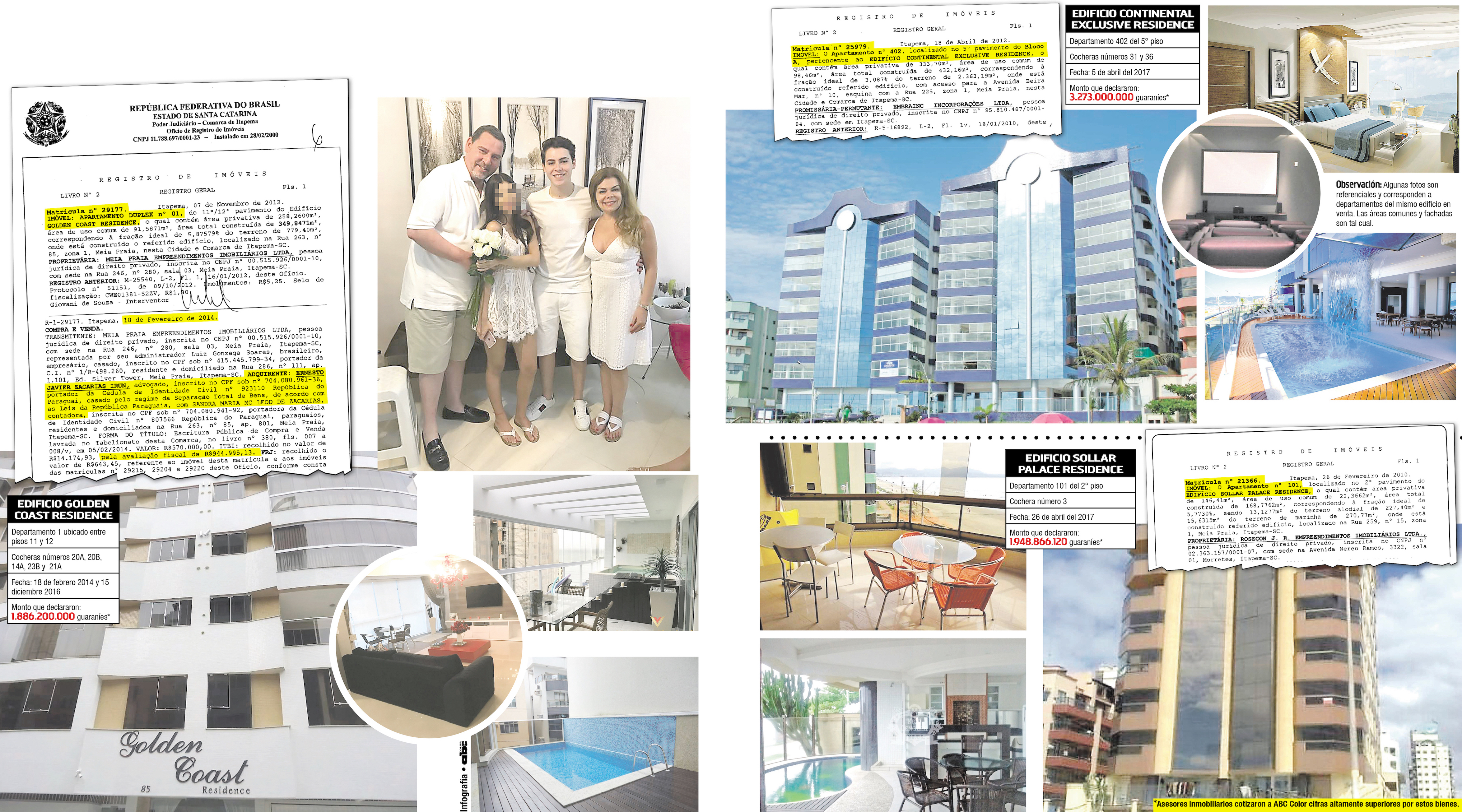 Heute ist die Titelseite der Abc Color mal wieder mit Javier Zacarías Irún versehen, nachdem Kaufverträge für insgesamt drei luxuriöse Wohnungen an brasilianischen Stränden bekannt wurden. Alle Wohnungen befinden sich in Meia Praia, Santa Catarina nahe dem bekannten Strandort Camboriú.