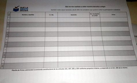 Eine Verfassungsabänderung mit mindestens 30.000 Stimmen einzuleiten, ist der neue Weg , den die Gesetzgeber des Ofizialismus zu gehen versuchen. Zu geeigneter Zeit soll die Liste eingereicht werden. Doch was verbirgt sich dahinter? Die Wiederwahl ist in der Verfassung verboten. Nur eine Reform kann dies ändern. Jegliche Versuche die die gleiche Absicht verfolgen, jedoch die Reform umgehen, sind nicht legitim. Dies hält jedoch keinen Politiker davon ab, es trotzdem zu versuchen. Somit wurden vorsorglich in allen Ministerien Listen ausgelegt, die unterzeichnet werden mussten. Natürlich steht es den Funktionären frei die Drohungen anzuzeigen, dies käme jedoch einem Entlassungsantrag gleich, weswegen alle still halten und anscheinend niemand in die Hand beißt, die ihn füttert.