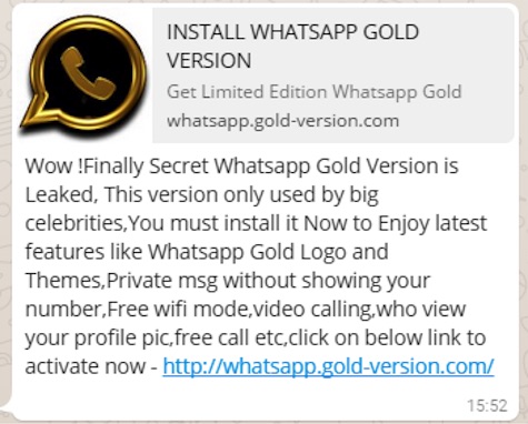 Asunción: Neuerdings wird Nutzern von WhatsApp ein Link angeboten, durch welchen sie WhatsApp Gold, also eine vermeintliche Premium Variante des Messengers herunterladen können. Die ist jedoch eine Falle.