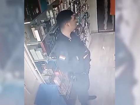 Der Uniformierte Marcos Garay von der 8. Polizeistation von Capiatá wurde von Überwachungskameras in dem Moment gefilmt, als er zwei Parfüms aus einer Apotheke mitnahm, die er nach der Anzeige eines anderen Raubüberfalls aufsuchte.