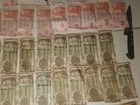 Beschlagnahmt wurden ein Messer und ein Beutel, in dem sich insgesamt 405.000 Guaranies befanden.