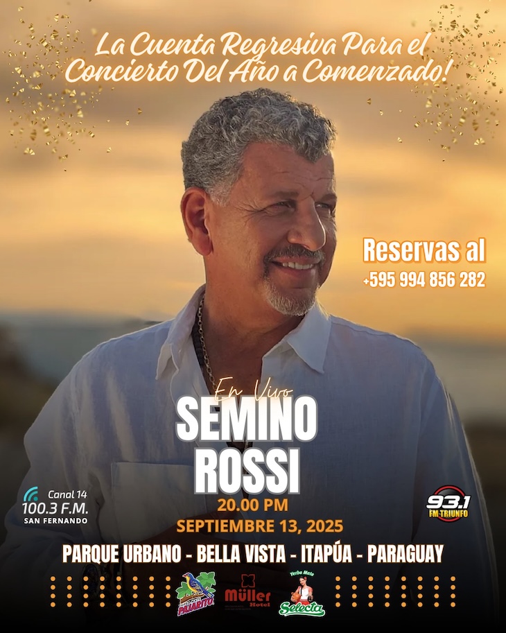 Am Samstag, 13. September, wird Colonias Unidas zum Schauplatz eines triumphalen Spektakels, wenn Semino Rossi, der gefeierte Meister der romantischen Musik, die Bühne betritt. Mit seiner unvergleichlichen Stimme, geschmückt mit Gold- und Platin-Auszeichnungen, wird er die Herzen der Zuhörer in einen Strudel der Begeisterung reißen.