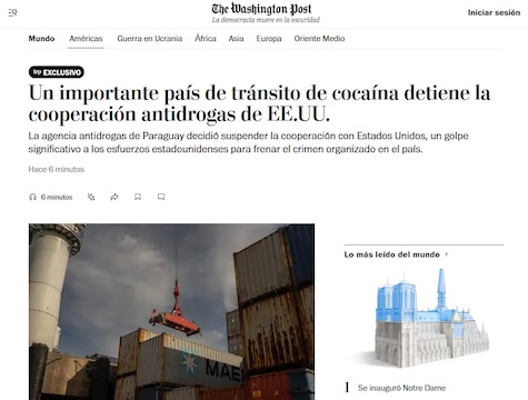 Schließlich weist die Zeitung darauf hin, dass Paraguay zunehmend eine führende Rolle als Drogenroute nach Europa spielt.
