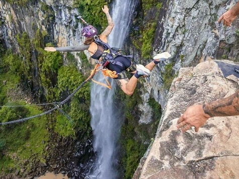 Dieser Art Pendelsprung wird in Santa Catarina, Brasilien, von einer Klippe aus gemacht. Der freie Fall ins Leere zwischen den Klippen der bemerkenswerten Schluchten ist ein unvergessliches Erlebnis, das viele Touristen anzieht. Jahr für Jahr suchen massenhaft Besucher dieser Ort auf, teilweise muss man stundenlang Schlange stehen, bis man an die Reihe kommt.